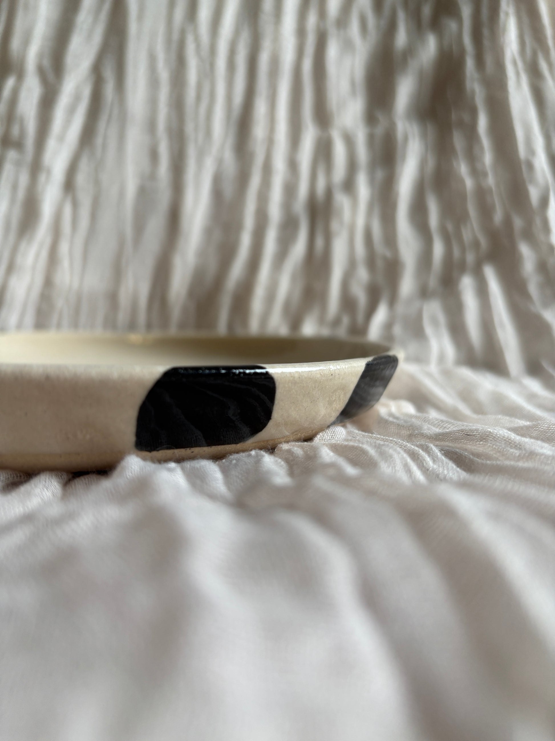 Each piece is unique and will have different markings within the glaze which are to be embraced.